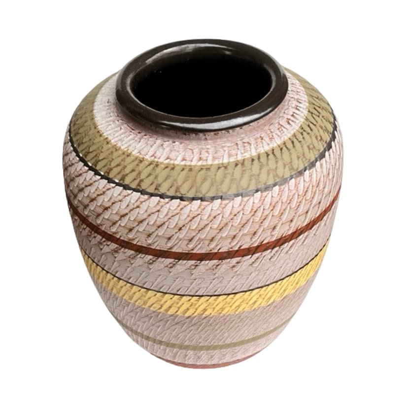 Handled vase, multicolor stoneware, Strehla Keramik, Germany, 1970s.