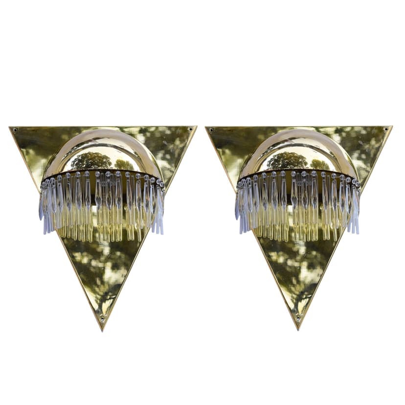Pair of wall sconces Art Deco, golden brass, Germany, 1970s.