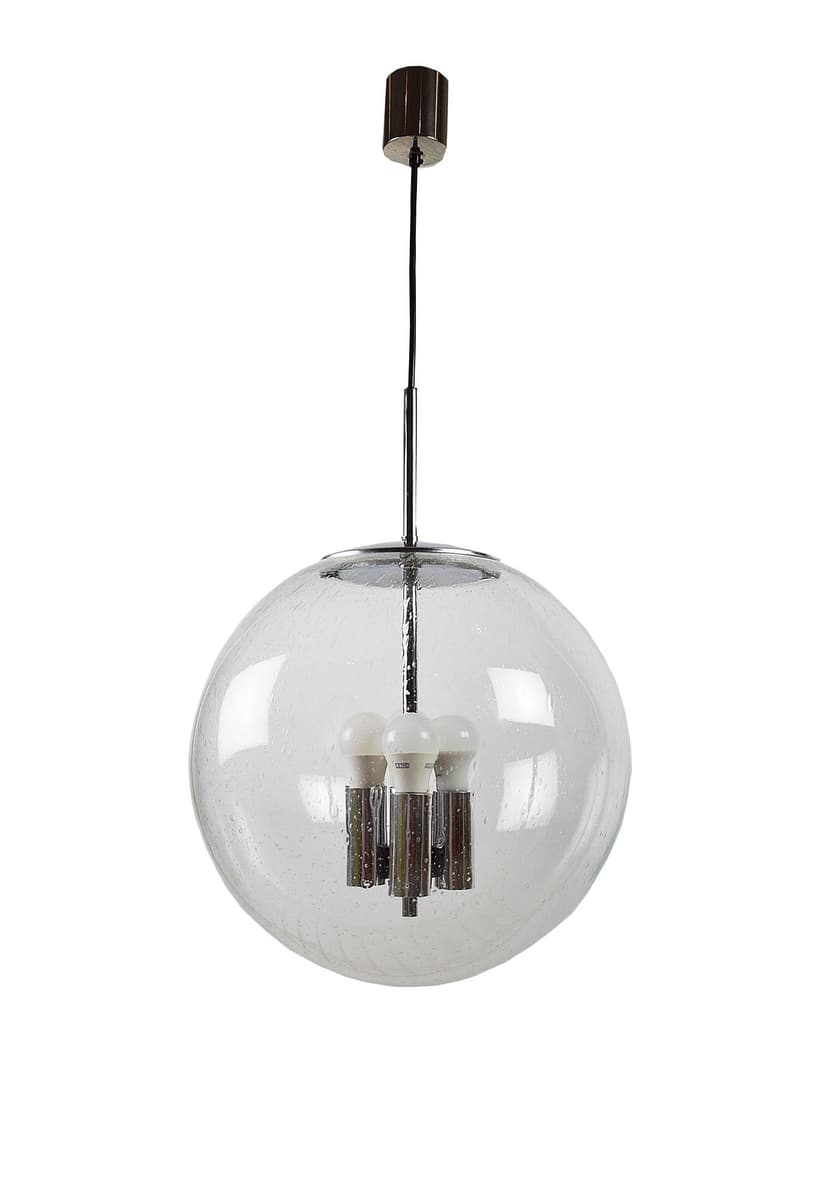 Pendant lamp, Murano glass orange, gilded aluminium, Peill&Putzler, Germany, 1970s.